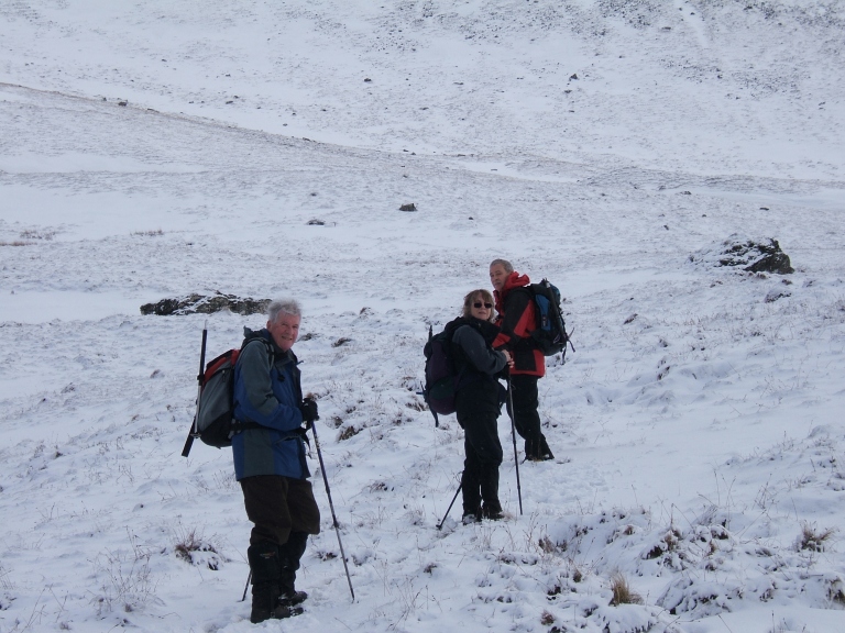 Monday - Marg Foster, John Dempster and Roger James (with an incredibly well packaged sandwich) on Stob Dubh.